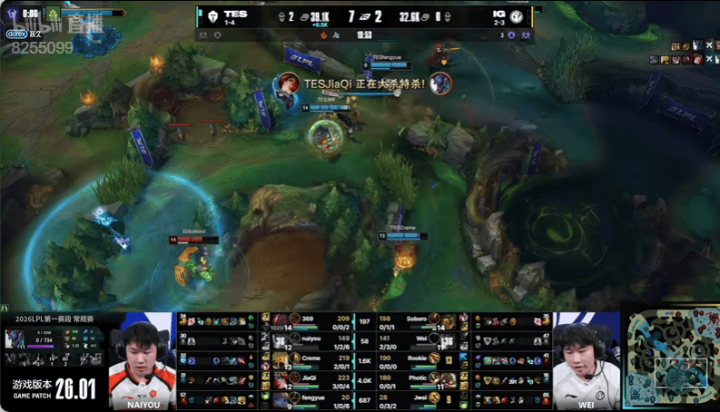 6分钟:IG野辅集火fengyue被反打,JiaQi收下双杀