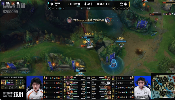 虎扑01月25日讯IG红色方,TES蓝色方