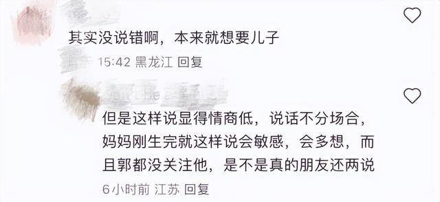还有一些网民翻出郭富城母亲生前,遗憾没有抱上孙子一事进行讨论。尽管郭富城及妻子已经再三强调,生儿生女他们都喜欢,但仍有部分网民并不买账,直指两夫妻嘴硬。