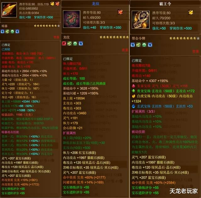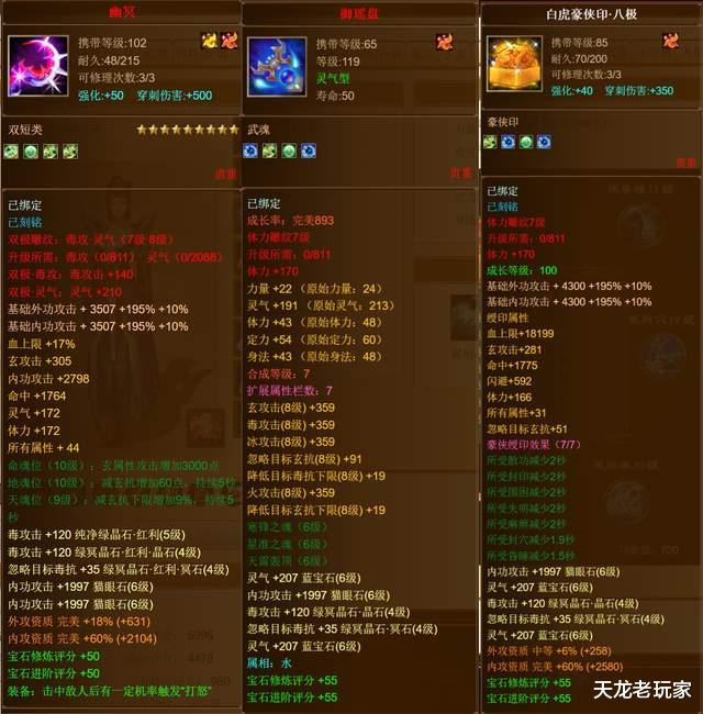 全身就3颗红宝石!精通都是三灵气和三内功攻击!