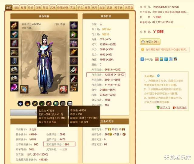 天龙八部: 一进阶玄毒内三修慕容只卖1388? 内功攻击高达42万!