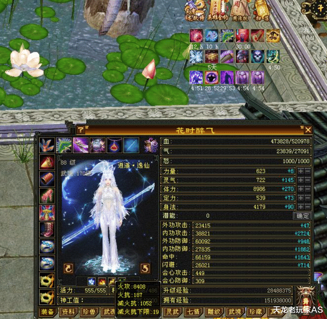 来自【紫禁之巅】服务器的“花时醉”,面板绝绝子:血量52万,内功攻击3.8万,命中6.6万,闪避2.6万,会心攻击449,会心防御309,主火攻击8408,减火抗1052,减抗下限19!