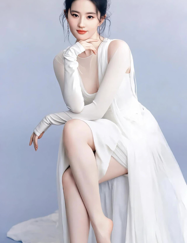 38 岁刘亦菲穿白裙身材逆天, 优雅性感拿捏松弛高级感