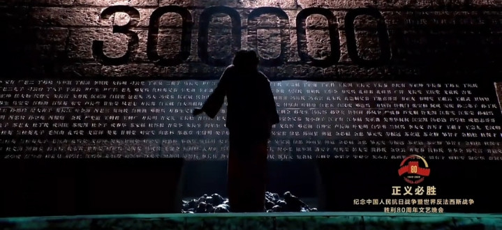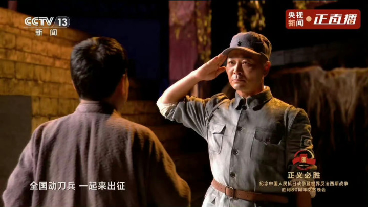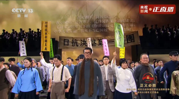 “日本无条件投降”,随着一阵原声复刻的录音播出,全场肃静,中国人名抗日战争暨世界反法西斯战争胜利80周年文艺晚会,正式开幕!