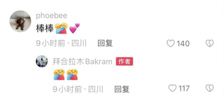 拜合拉木在社媒发帖庆祝双响,评论区一位女性网友留言“棒棒”,获拜合拉木亲切回复。
