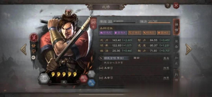 甘宁:锦帆军+草船借箭(全统,1速)