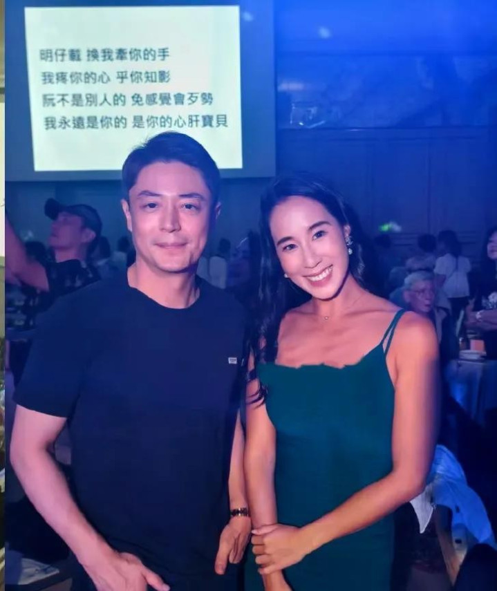 林心如自己穿了件深蓝色礼服,妆很细,眼神特别温柔。她现在不只是演员,是能自己拍戏、自己当制片的主心骨。霍建华在一旁穿着浅蓝T恤,素脸朝天,反倒显得更精神了,估计最近拍戏管得严,脸型紧致了不少。两人站一块儿,不用说话也像在发糖。