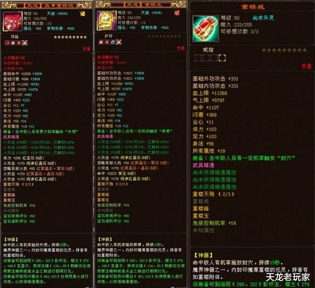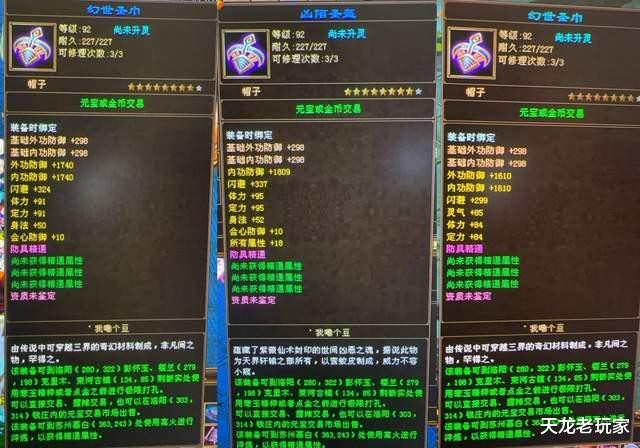 你敢信这三个帽子是同一拨出的?都带体力,尤其是中间这个帽子,还是个完美词条的极品大八星深蓝帽子!
