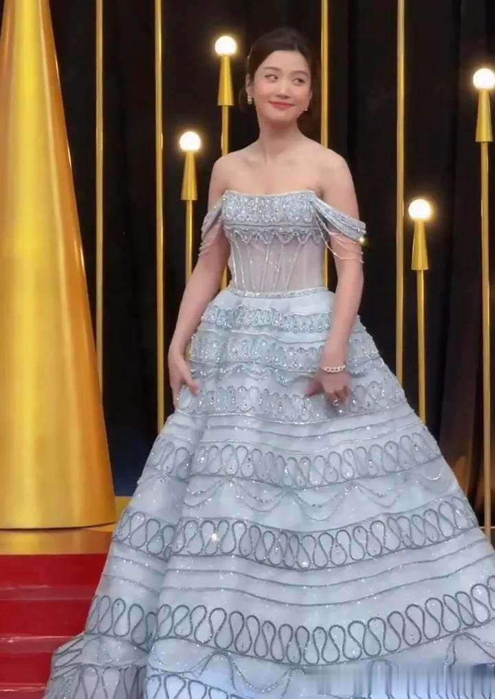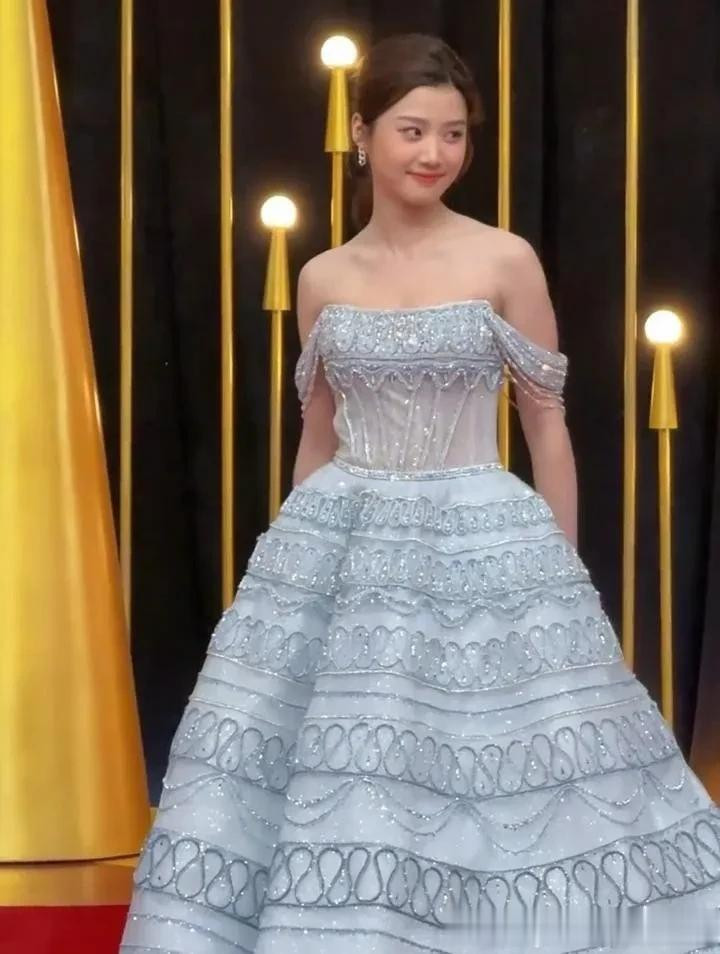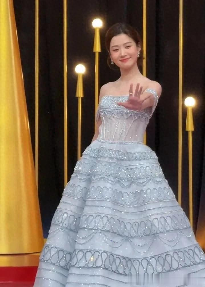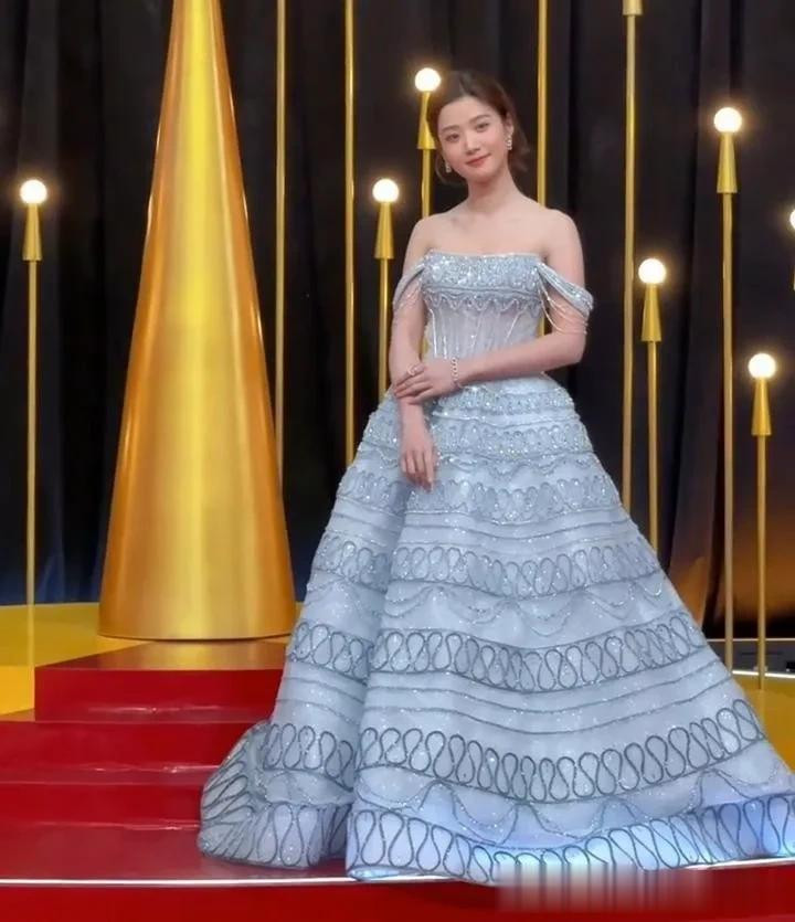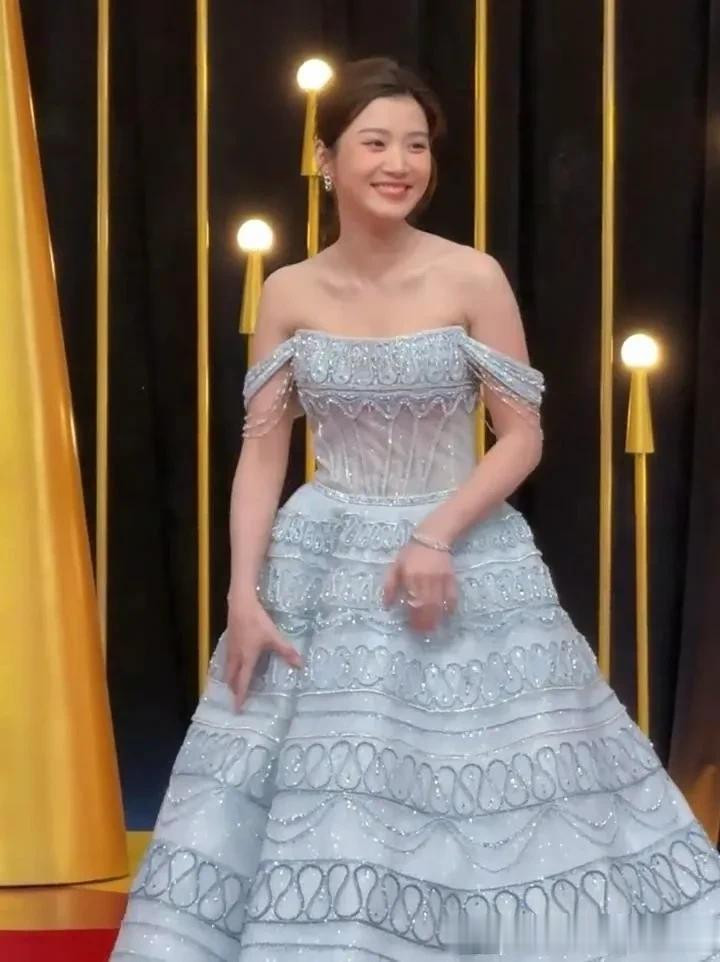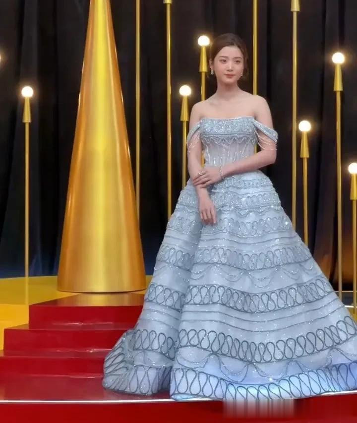 卢昱晓在厦门参加活动, 她穿着蓝色裙子, 脸红扑扑的, 真的好美啊